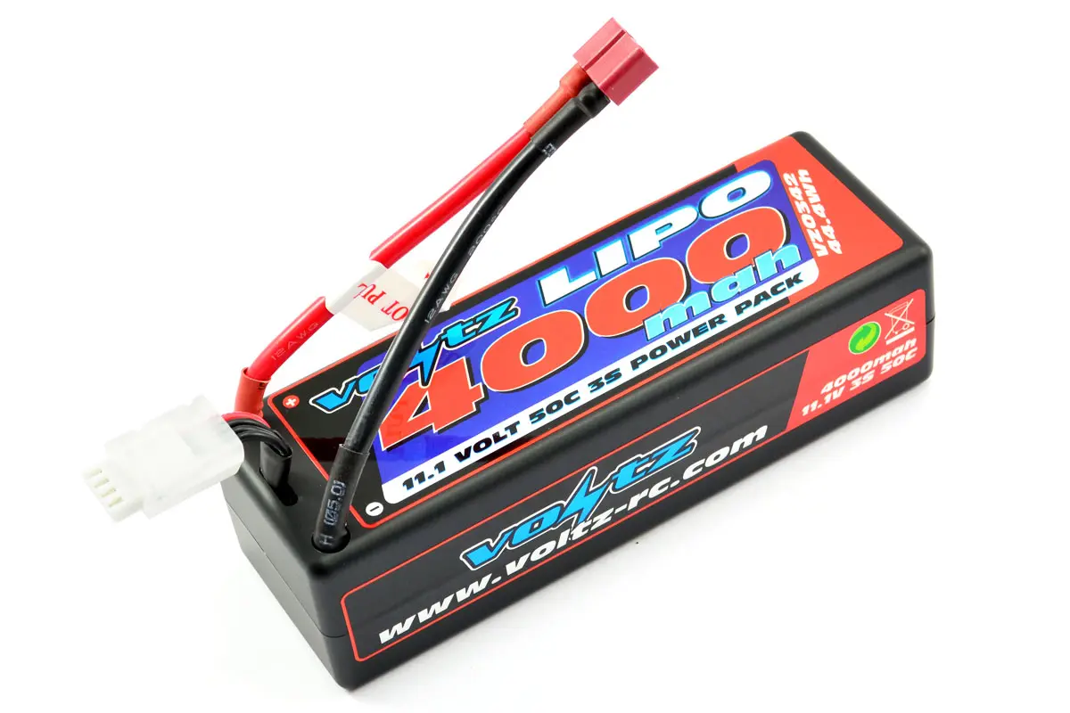 Experience the rugged durability of Voltz RC LiPo power with this 4000mAh 11.1V 50C hard case low profile lithium polymer battery suitable for all radio control vehicles. The hard shell provides extra protection for the battery, allowing the RC car to be driven to its extremes whilst maintaining great power.