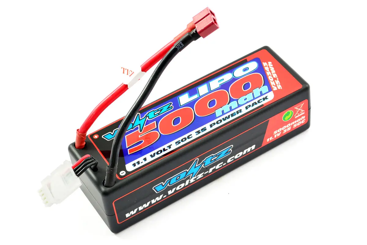 Experience the rugged durability of Voltz RC LiPo power with this 5000mAh 11.1V 50C hard case low profile lithium polymer battery suitable for all radio control vehicles. The hard shell provides extra protection for the battery, allowing the RC car to be driven to its extremes whilst maintaining great power.